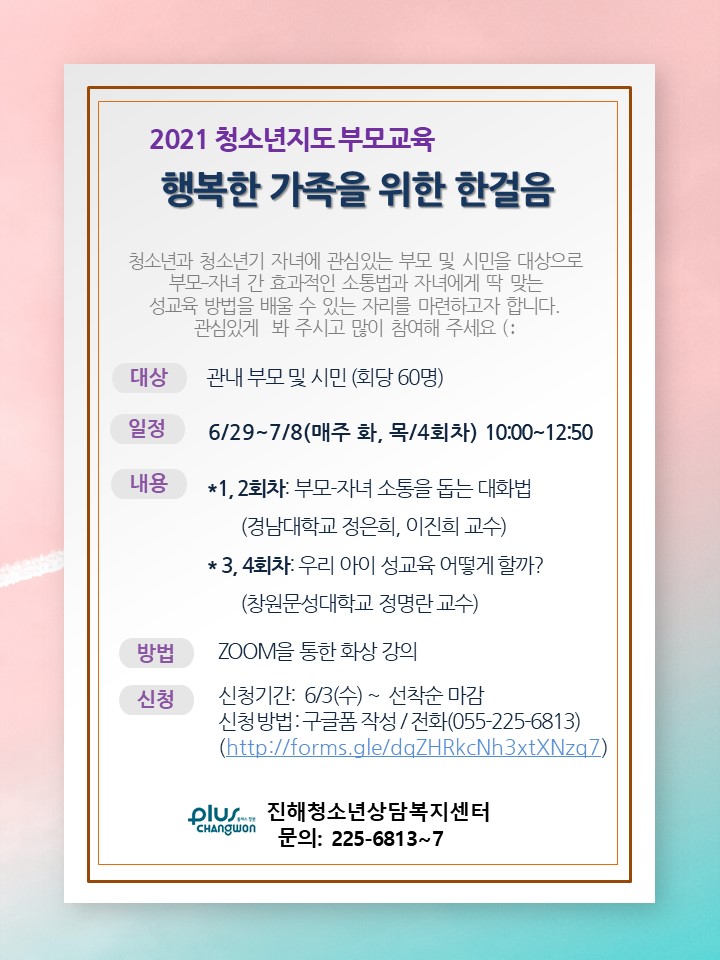 2021년 청소년지도 부모교육 '행복한 가족을 위한 한걸음' 안내