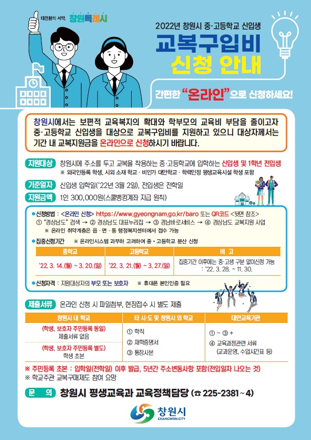 2022년 신입생 교복구입비 신청 안내