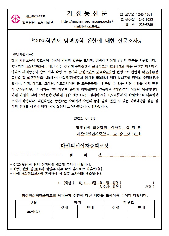 2025. 남녀공학 전환에 대한 설문조사