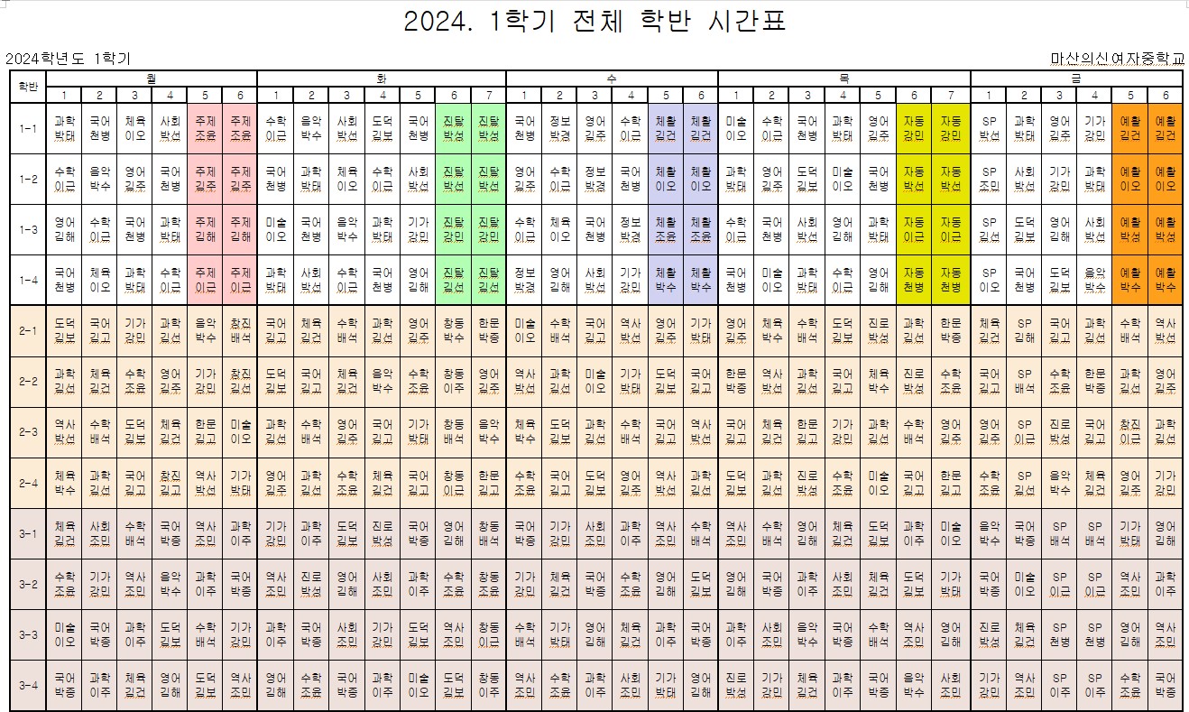 임시 시간표에서 변경된 부분이 있으니 확인 바랍니다.