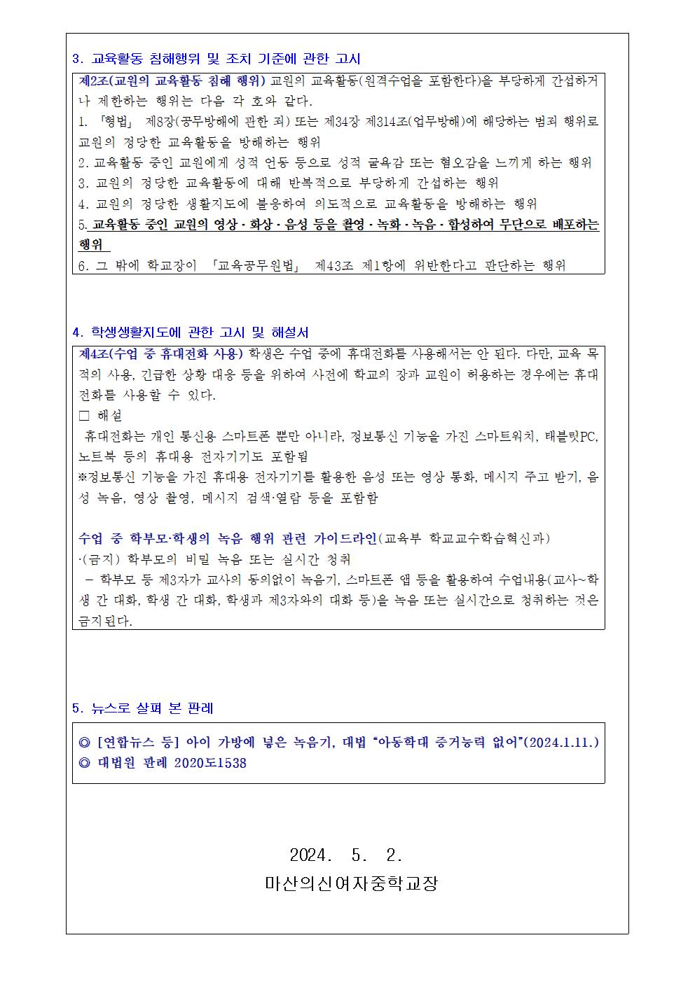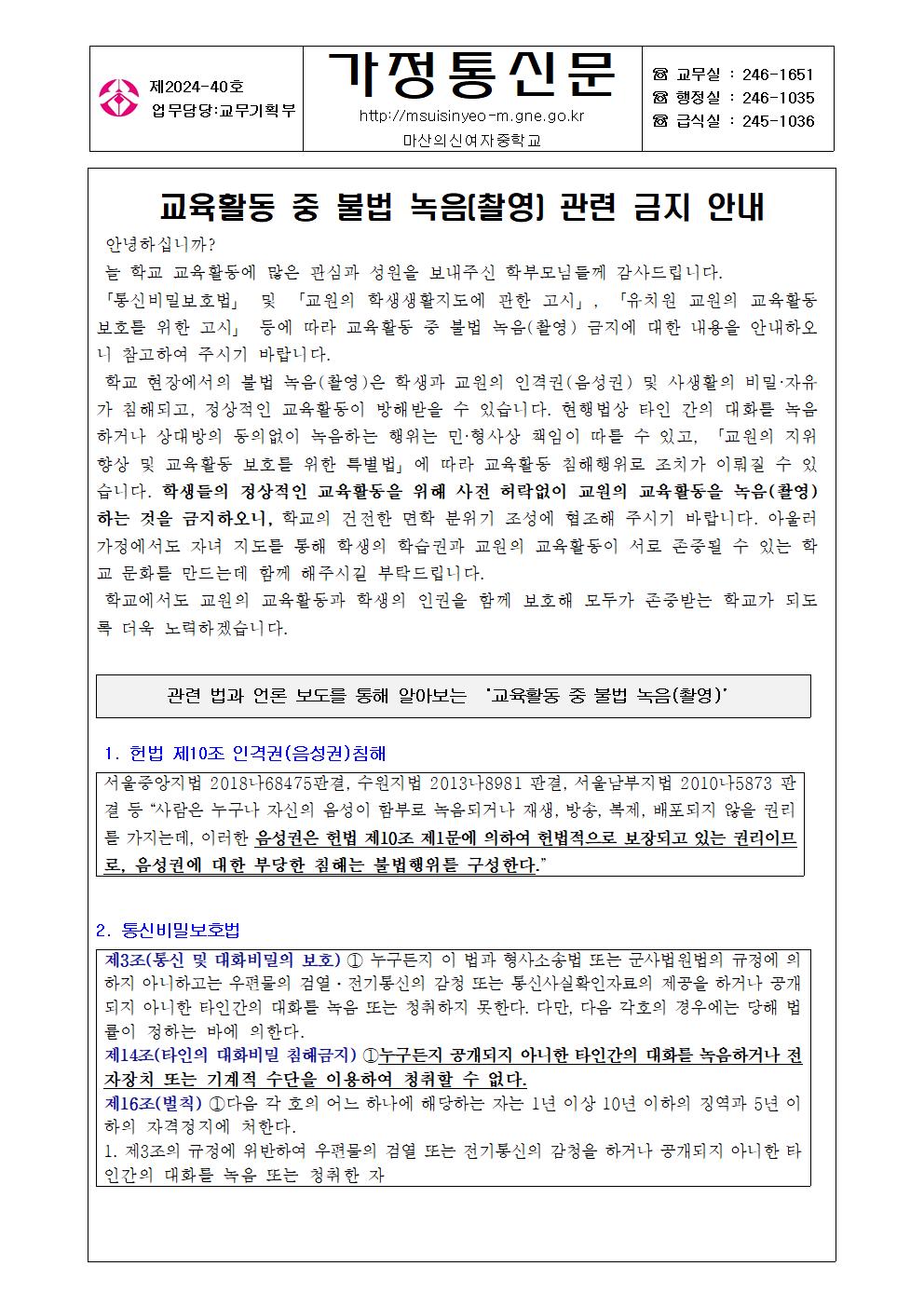 교육활동 중 불법 녹음(촬영) 관련 금지 안내