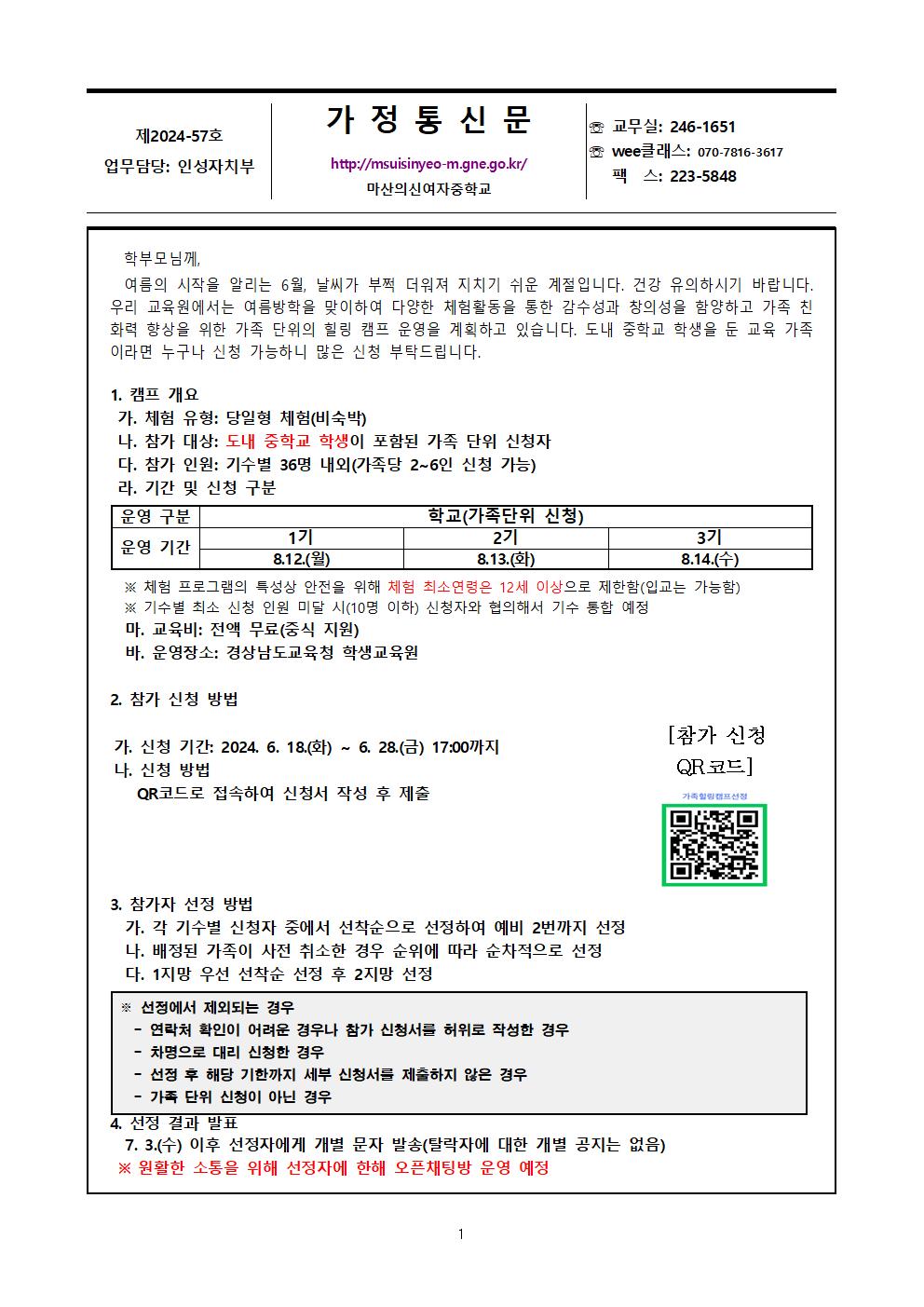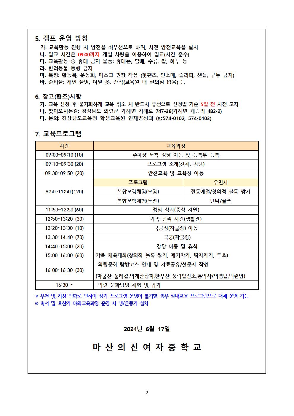 2024. 경상남도교육청 학생교육원 가족힐링캠프 계획 안내