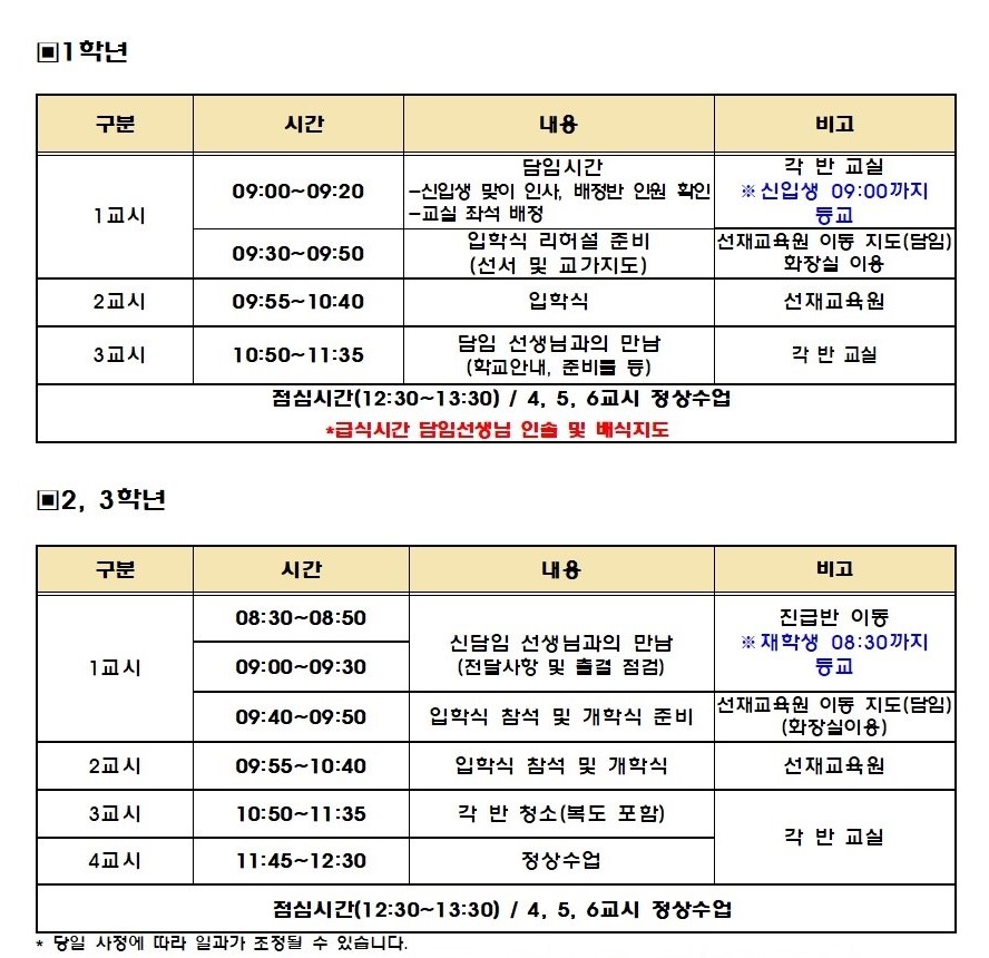 3) 학교 공사로 인해 입학식 행사에 방문자 교내 주차 불가함.